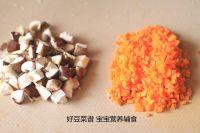 1.香菇切碎,胡萝卜切丁。胡萝卜一定要切得非常非常小块儿,要不然不容易熟。